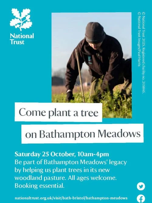 Planting trees on the meadows Saturday, October 25, 2025 10:00 AM 4:00 PM 10:00 16:00 Google Calendar ICS Help the National Trust plant trees on Bathampton Meadows. More information and booking here.