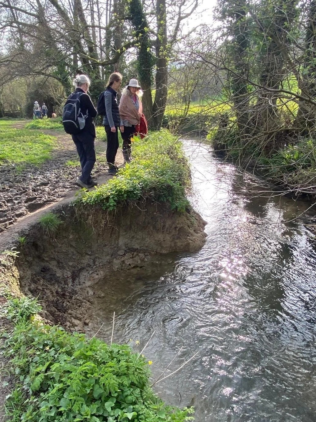 On a beautiful clear day a group of eleven pilgrims and a dog set off from Marshfield to celebrate the Spring Equinox of 2026 by walking from the source of St Catherine’s Brook near Marshfield to Batheaston where it enters the (Bristol) Avon. The idea was inspired by the campaigning group We are Avon who encouraged River Guardian groups in their network to hold events to raise awareness about their campaign to improve and clean up the River Avon. The peacefulness of the valley and its waterways belied the existence of its industrial past when, as well as market gardens and small farms, paper, wheat and other mills would have added to the working population .