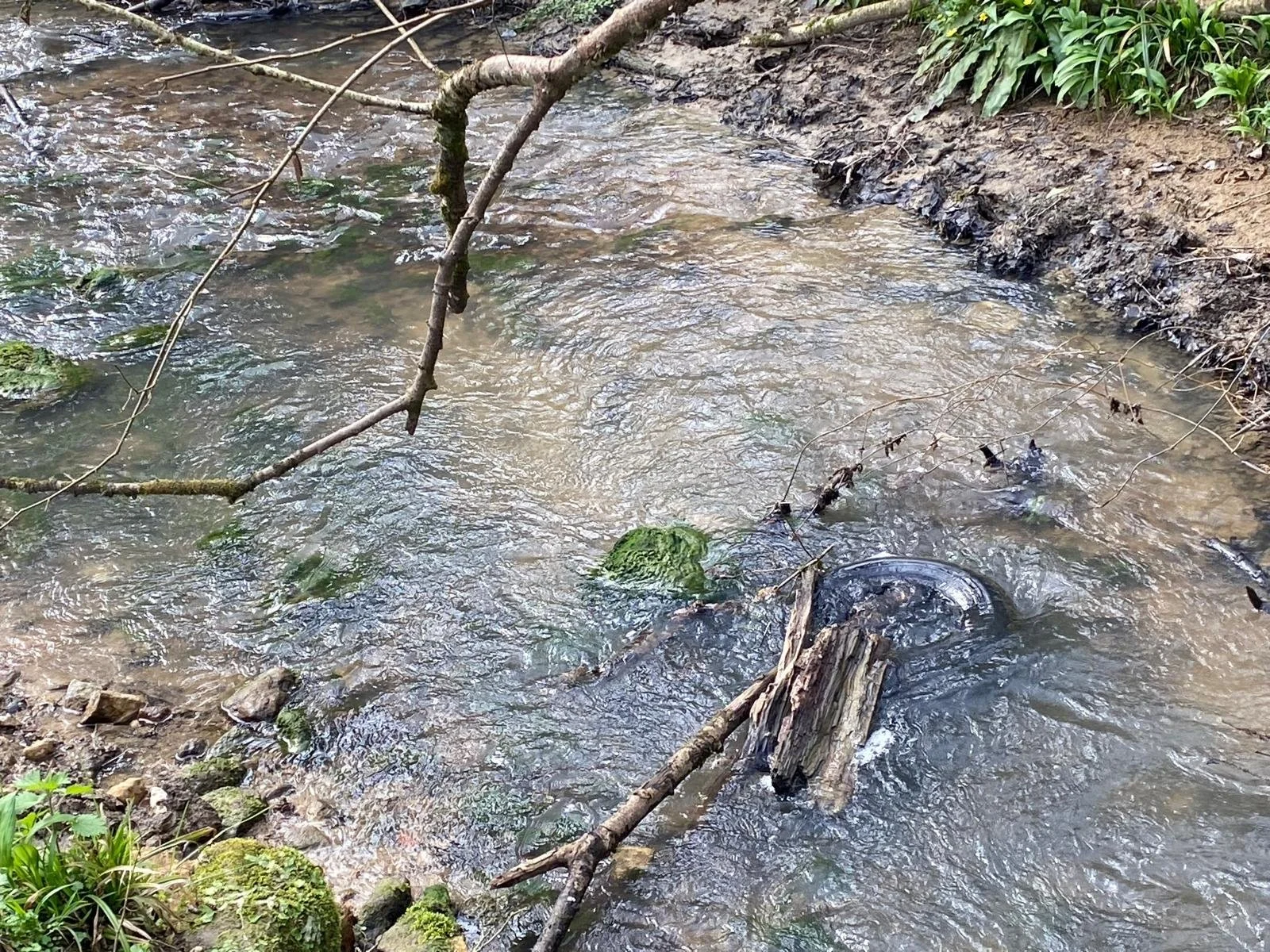 The stream was a little cloudy throughout its length but Ian informed us that Fullers earth in the catchment produced a very fine silt for the stream to carry so the water was unlikely to be as clear as a chalk stream and there was little vegetation, despite there once being brown trout in this section of the Brook.