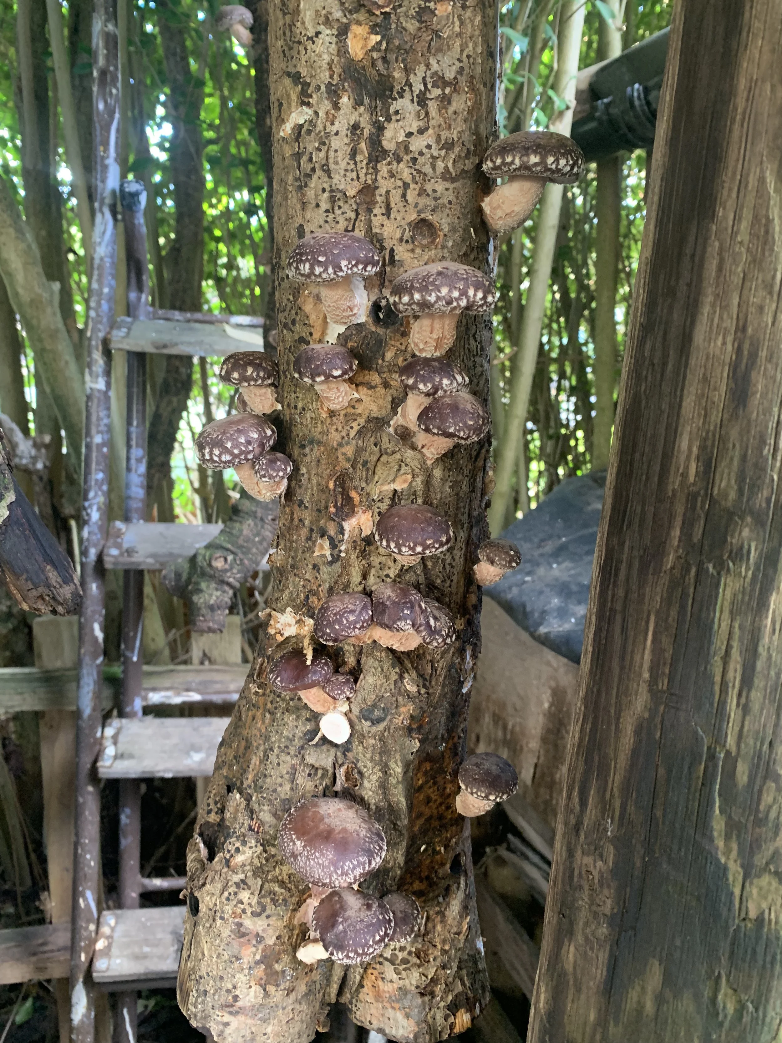 Mushrooms hadn’t played a big part of my diet up to now other than button mushrooms on a fry up or a large field mushroom baked with Blue Cheese and served with a steak. But after helping in the inoculation stage of shiitake into oak logs on a field trip as part of my PDC, growing mushrooms is something I’ve always wanted to try.